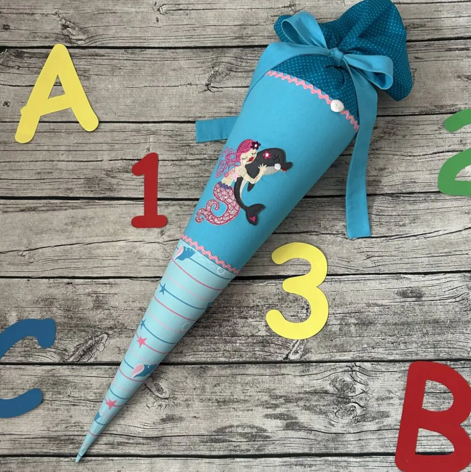Die Schultüte ist 70cm groß, Plus der Stoff zum verschließen und genäht aus 100% Baumwolle.