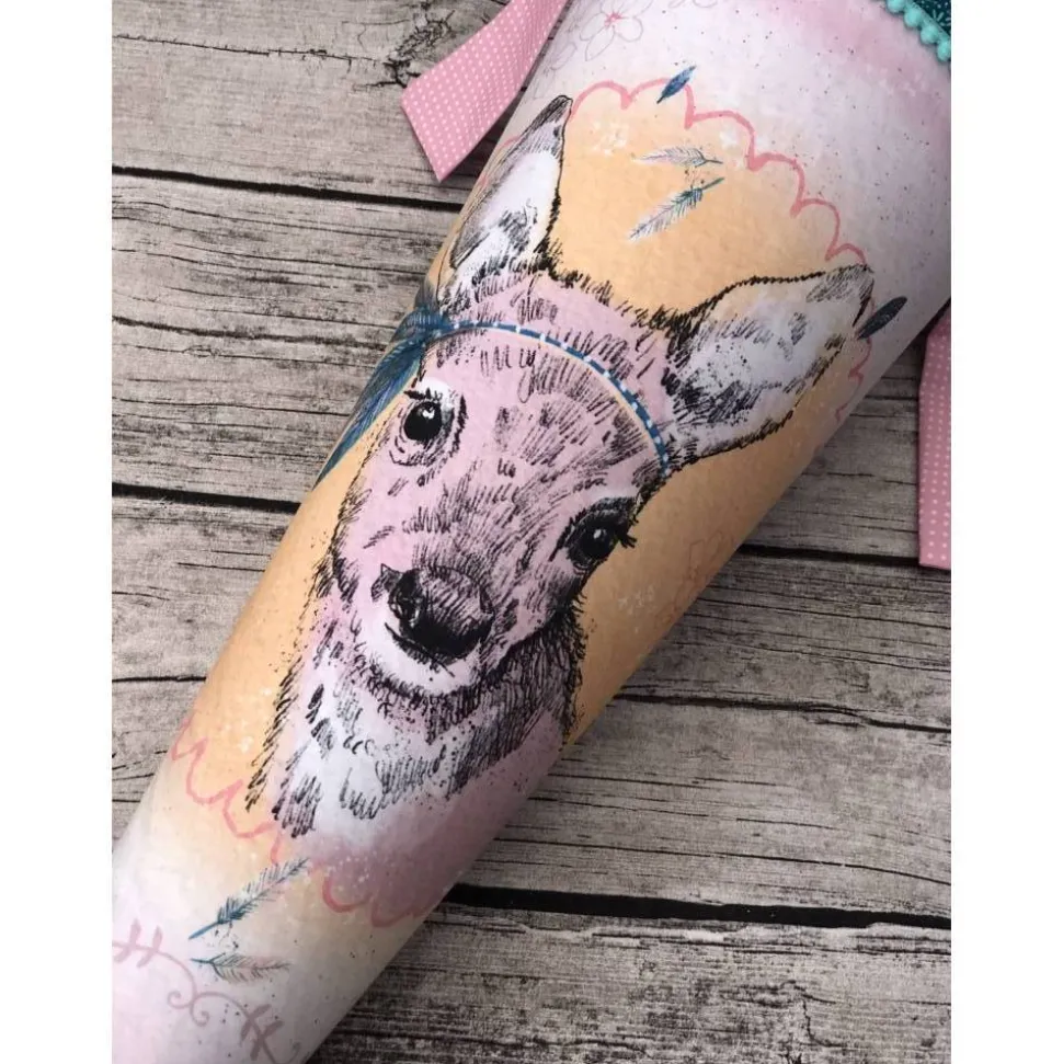 Hier habe ich eine sehr schöne für euch, genäht aus einem Baumwollstoff-Panel mit einem wunderschönen Reh im Boho Stil von Lillestoff. Kombiniert mit schöner Baumwolle und einem Zierband.
