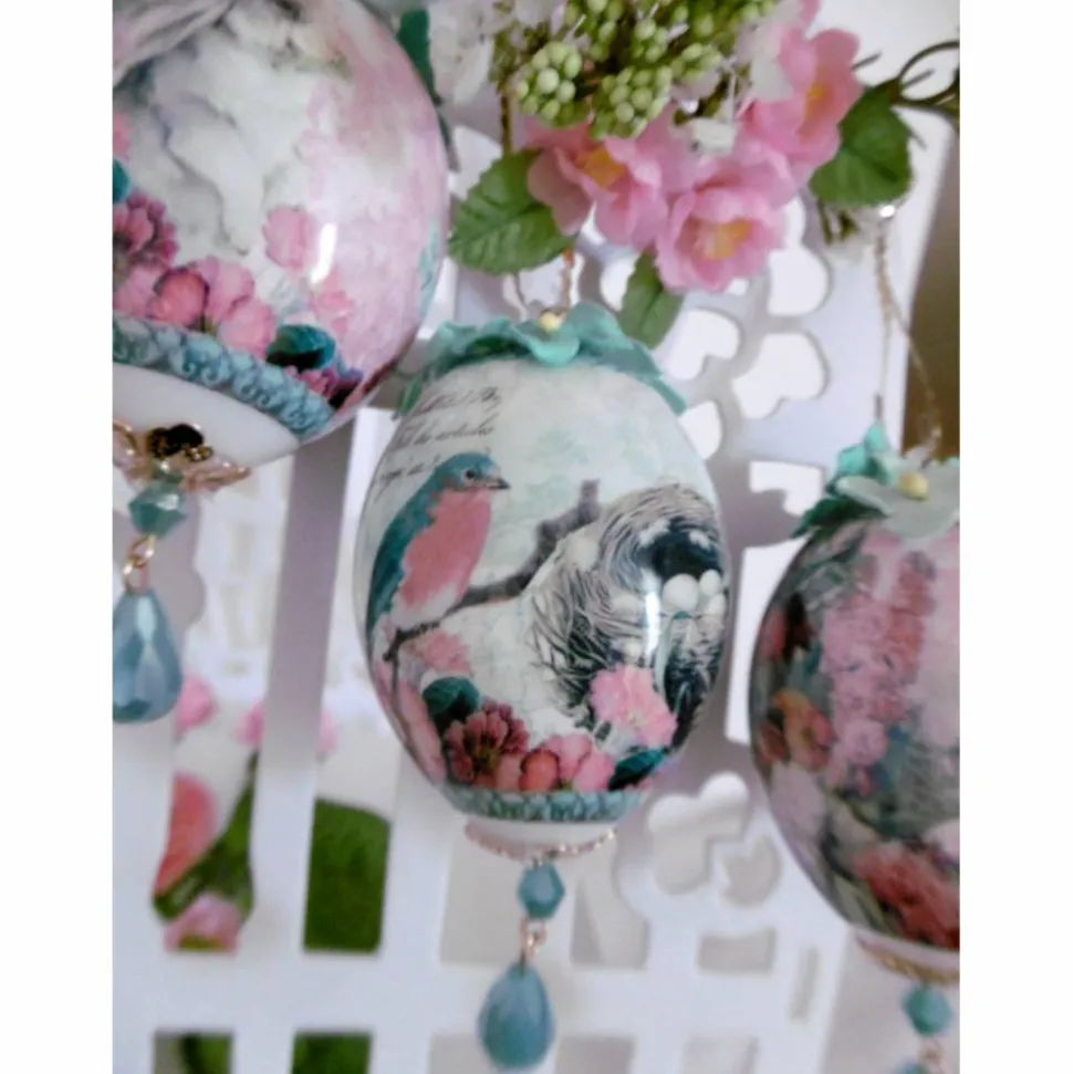 Wir bieten Ihnen hier 1 exclusiv dekoriertes Osterei in den Farben mint und rosa.