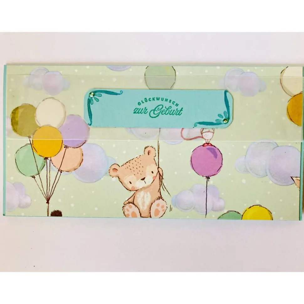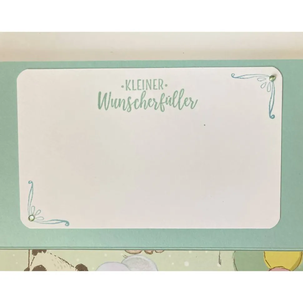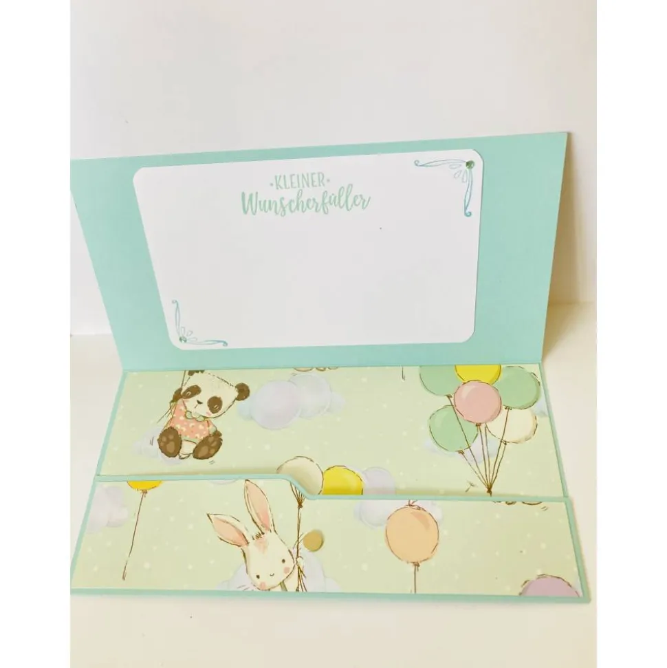 Diese handgemachte Wunscherfüller Karte zur Geburt hat genau die passende Größe, um die beliebten Gutscheinkarten oder Geldscheine liebevoll zu verschenken.