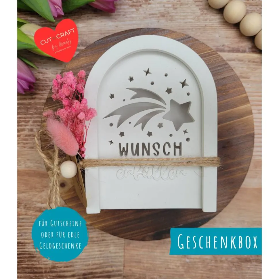 Die Gutscheinbox eignet sich ideal, um Geldgeschenke oder Gutscheine elegant zu verpacken – perfekt für alle, die eine schöne Alternative zu klassischen Umschlägen suchen.