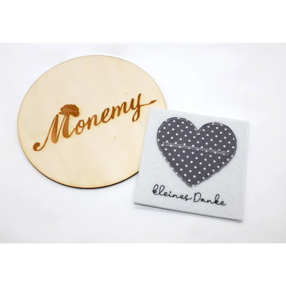 • Stickerei: „kleines Danke“ unterhalb des Herzens