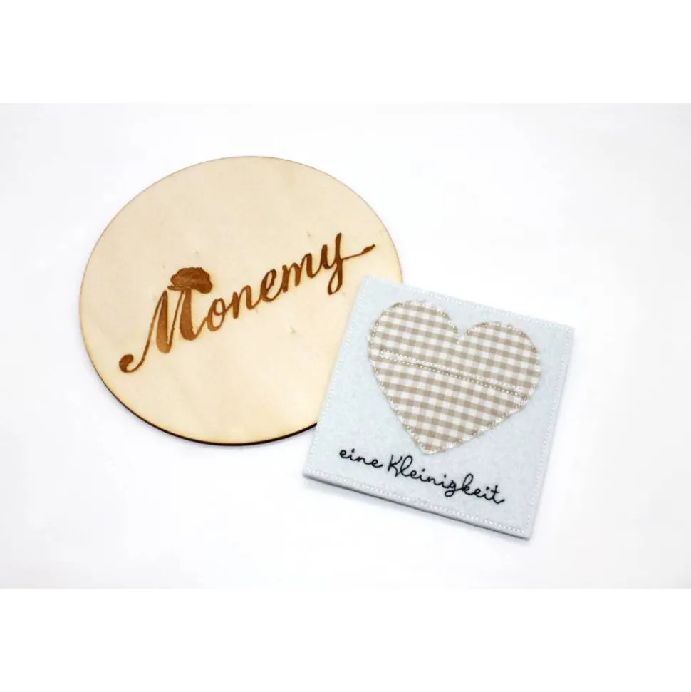 • Text: „eine Kleinigkeit“ (eingestickt unter dem Herz)