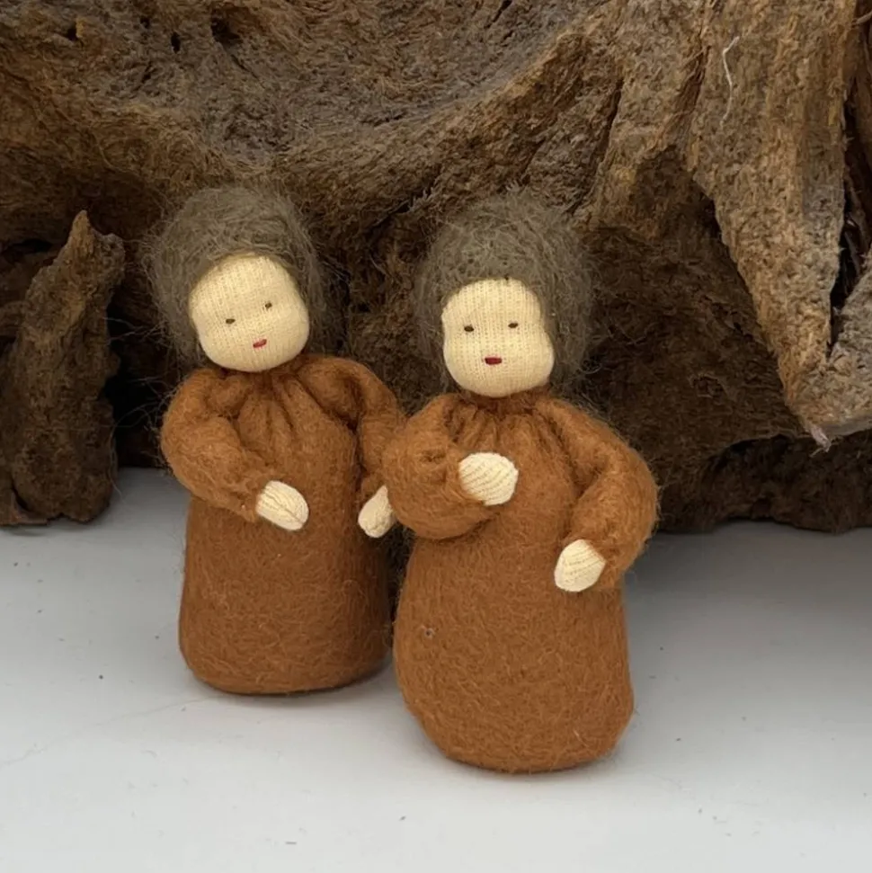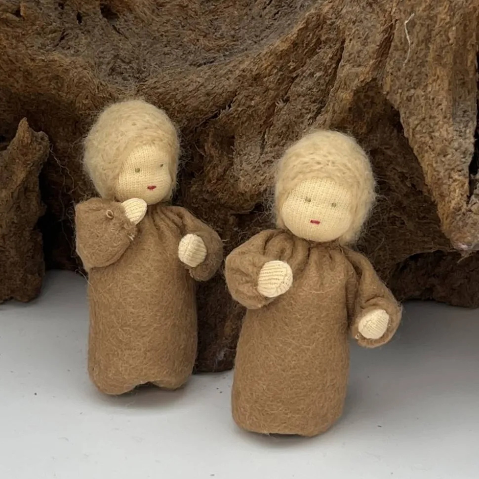 Das Püppchen ist unten geschlossen und für einen guten Stand unten mit feinem Dekokies und der Rest mit reiner Schurwolle gefüllt.