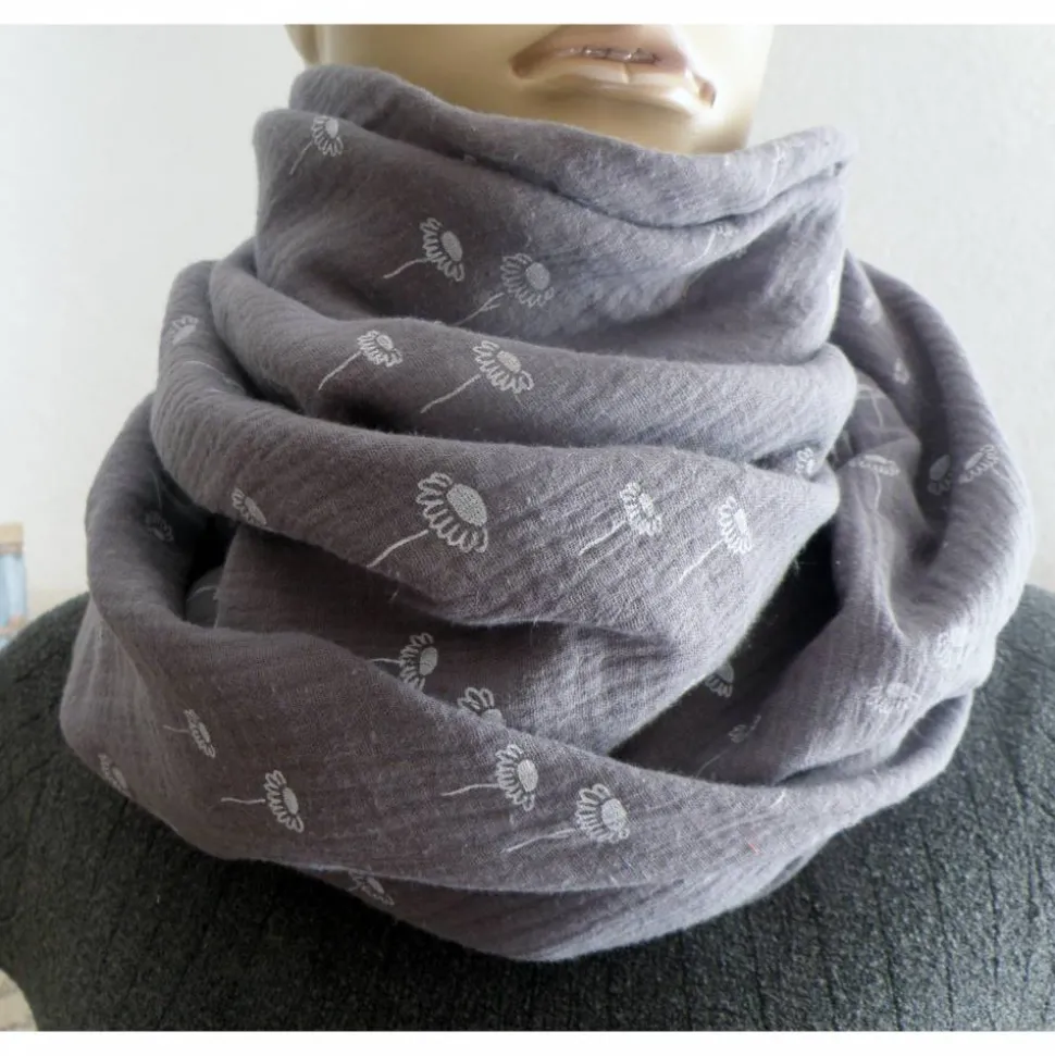 Material: Musseline 100% Baumwolle, Double gauze Grau mit weißen Gänseblümchen,, Öko – Tex Standard 100 Class I.