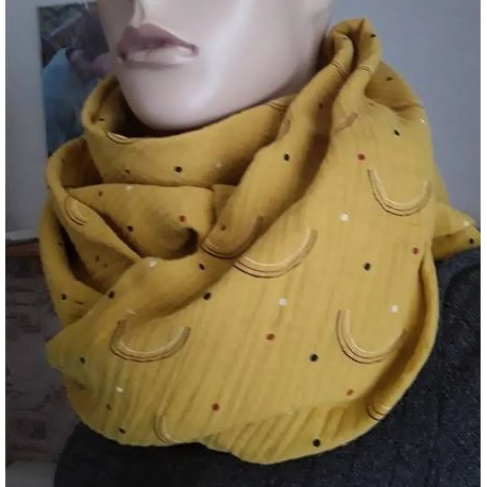Material: Musseline 100% Baumwolle, Double gauze Senfgelb mit Regenbögen, Öko – Tex Standard 100 Class I.
