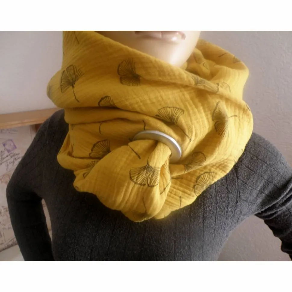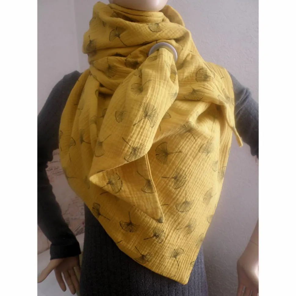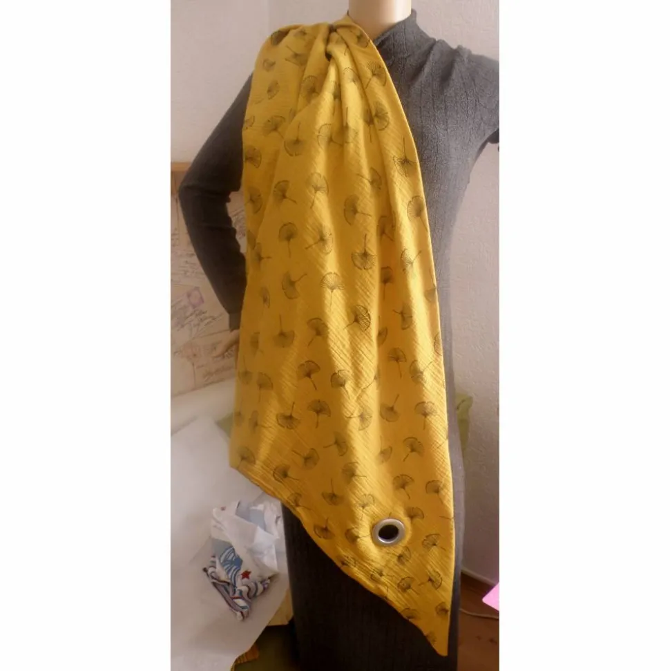 Material: Musseline 100% Baumwolle, Double gauze Senfgelb mit schwarzen Gingkoblüten, Öko – Tex Standard 100 Class I.