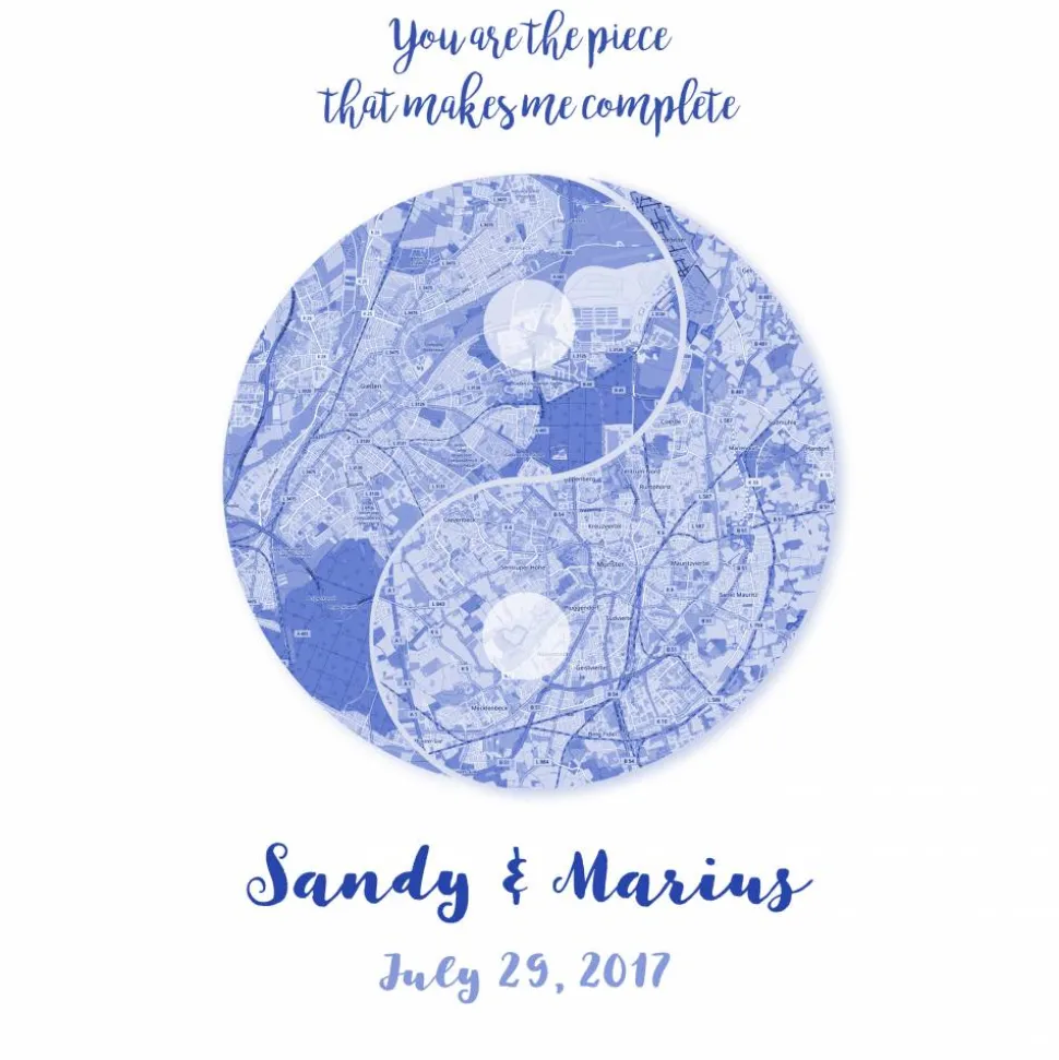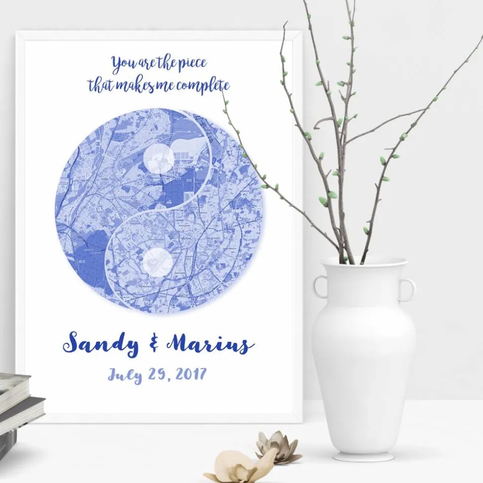 Individualisierbarer Farbdruck mit zwei Orten Eurer Wahl,