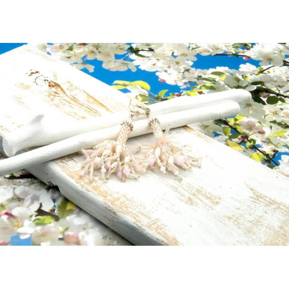 Entdecke einzigartige, beadwork Ohrringe aus Glasperlen in Weiß und Rosa – perfekt als Geschenkidee für Frauen, Freundin, als Brautschmuck zur Hochzeit oder einfach für Dich selbst.