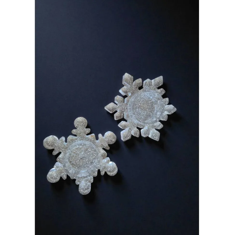 Verleihen Sie Ihrem Zuhause in der kalten Jahreszeit eine magische, gemütliche Atmosphäre mit diesen einzigartigen Teelichthaltern in bezaubernder Schneeflockenform! Jeder Halter wird liebevoll von Hand aus hochwertigem Epoxidharz gegossen, was jedes Stück zu einem glänzenden Unikat macht. Mit einem Durchmesser von 12 cm und einer Höhe von 3 cm lassen sie sich in jedes Arrangement einfügen.
