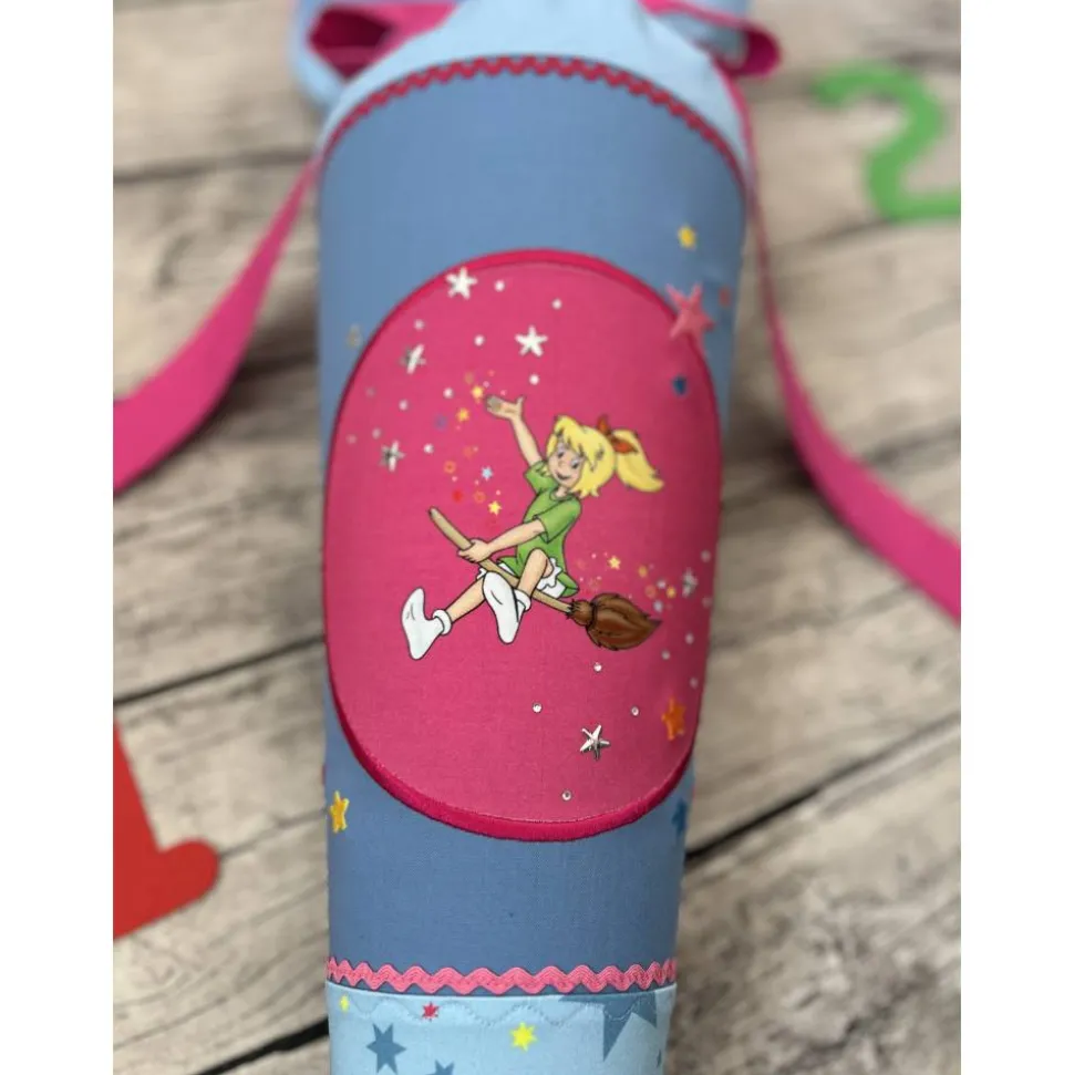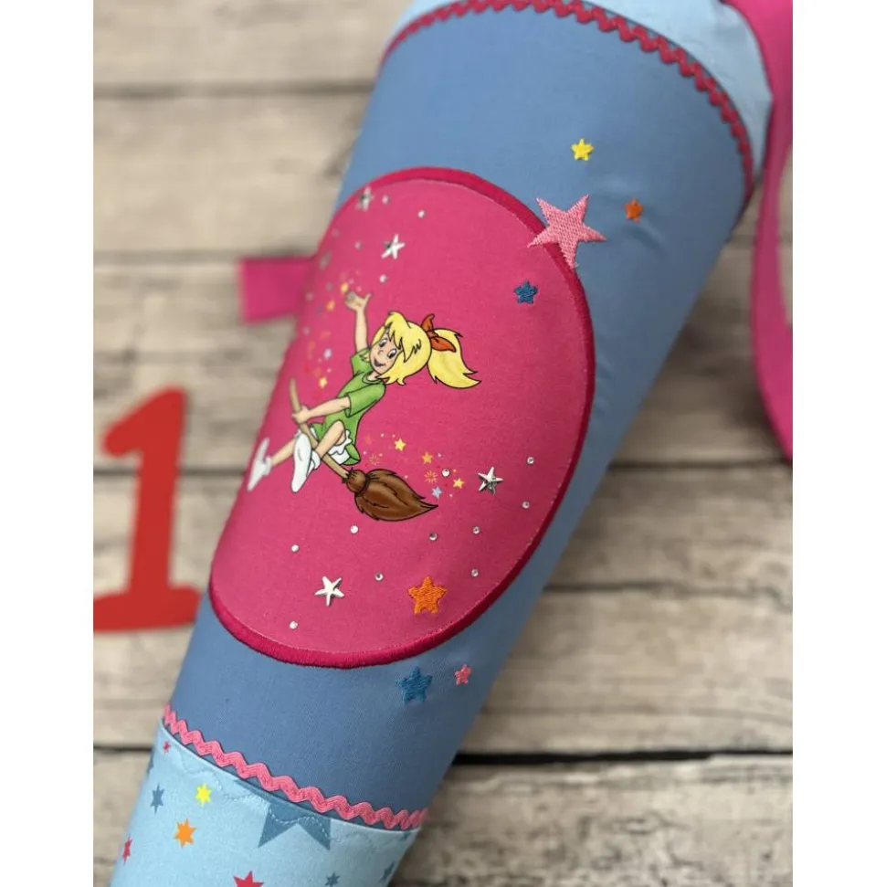 Hier habe ich eine ganz besondere für kleine Bibi Blocksberg Fans. Genäht aus zauberhaftem Baumwoll-Stoffen in Blau mit Sternen, kombiniert mit farblich passenden Uni Stoffen. Verziert mit einen wunderschönen Bibi Blocksberg Motiv von Stoffe Hemmers und bestickt mit kleinen Sternen passend zum Motiv. Zusätzlich verziert mit kleinen Glitzersteinchen & Sternchen.