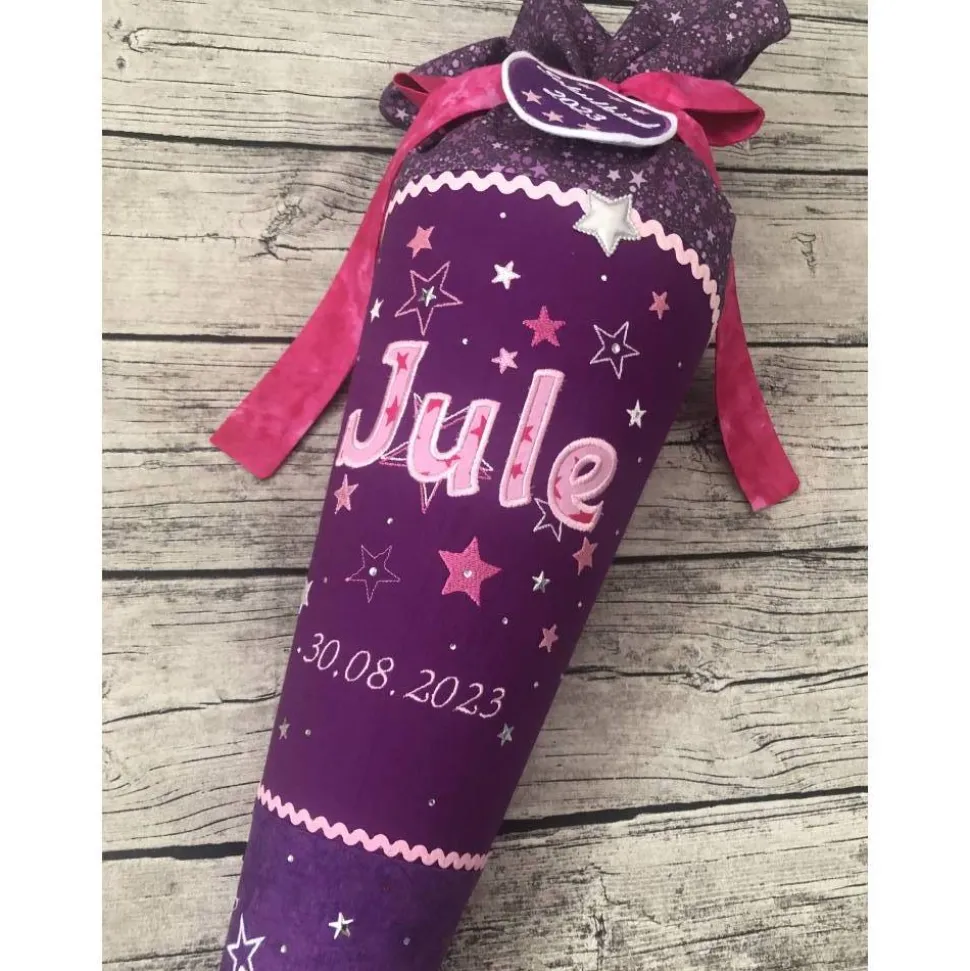 Die Schultüte ist 70cm groß, Plus der Stoff zum verschließen und genäht aus 100% Baumwolle. Der Papprohling zur Stabilisierung ist natürlich im Lieferumfang enthalten.