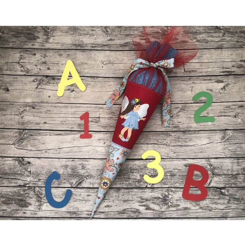 Die Schultüte ist 70cm groß, Plus der Stoff zum verschließen und genäht aus 100% Baumwolle.