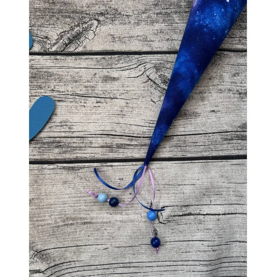 Bestickt mit einem zauberhaften Orca Motiv und verziert mit kleinen Glitzersteinchen. Zusätzlich hat sie an der Spitze eine Verzierung in Form kleiner Bänder und Perlen, sowie einen Anhänger an der Schleife mit der Aufschrift „Ich bin erstklassig“. Ein wunderschönes Unikat. Das selbstverständlich auch noch personalisiert werden kann.