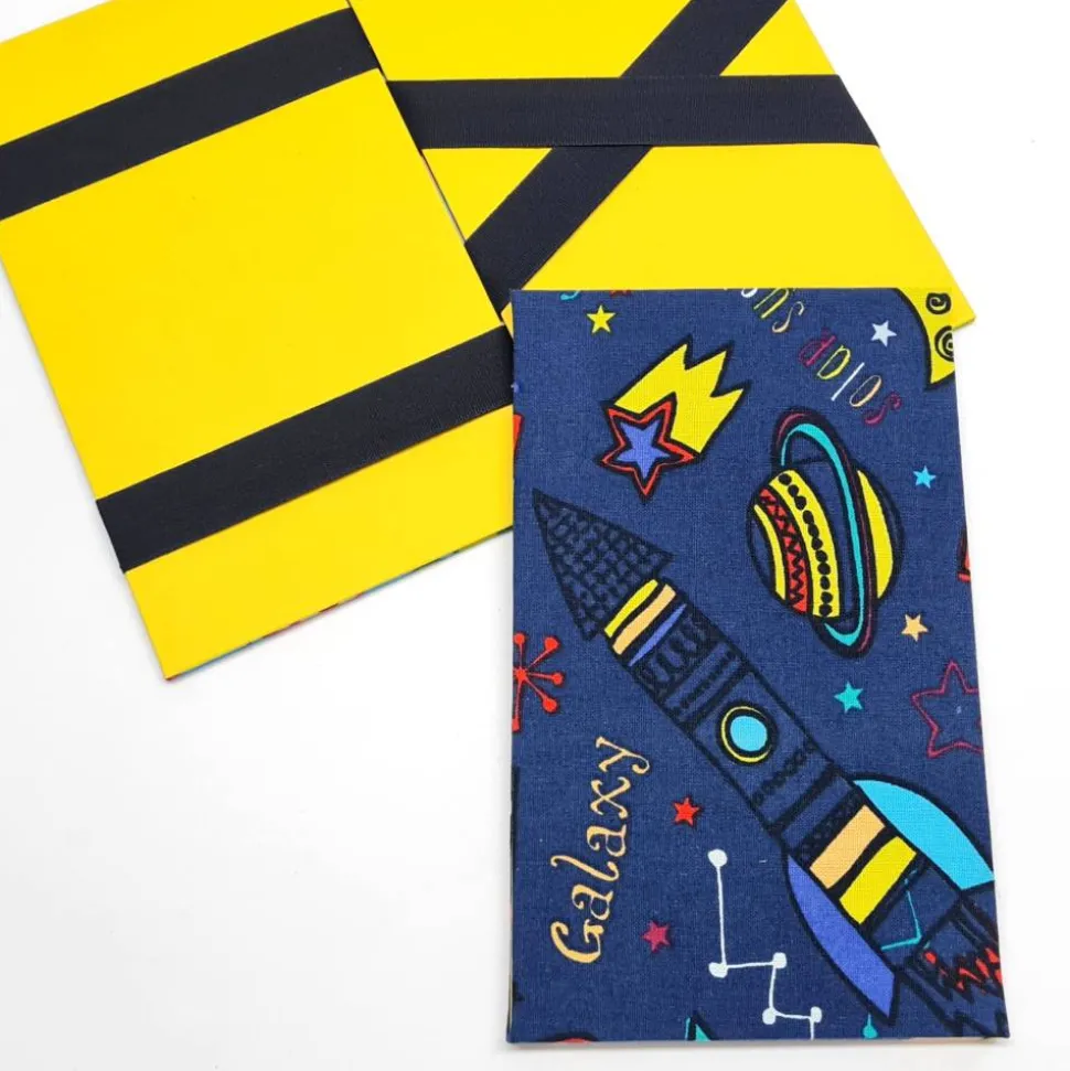 Nutze das Mäppchen nicht nur als Geldgeschenk-Verpackung, sondern auch für kleine Botschaften oder Glückwünsche. Die Zaubermappe ist aus 1,5mm Buchbindergraupappe und Schrenzkarton gefertigt, außen mit Baumwollstoff in verschiedenen Motiven überzogen und innen mit gelbem Efalinpapier ausgestattet.