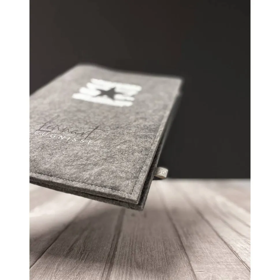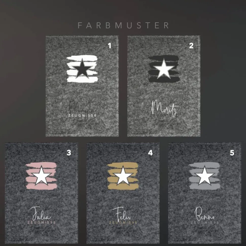 Die edle Zeugnismappe aus Filz bietet dir Platz für bis zu 40 Seiten im Din A4 Format. Du bekommst sie in den Farben Grau oder Anthrazit mit einem einseitig aufgedruckten Design in fünf eleganten Farbkombinationen. Ganz persönlich und unverwechselbar wird die Mappe durch den Aufdruck deines Wunschnamens. Der individuell für dich handgefertigte Filzumschlag enthält eine Verstärkung aus Buchbinderkarton und ein Sichtbuch mit 20 festverschweißten Klarsichthüllen.