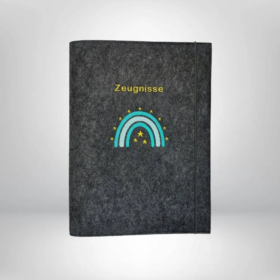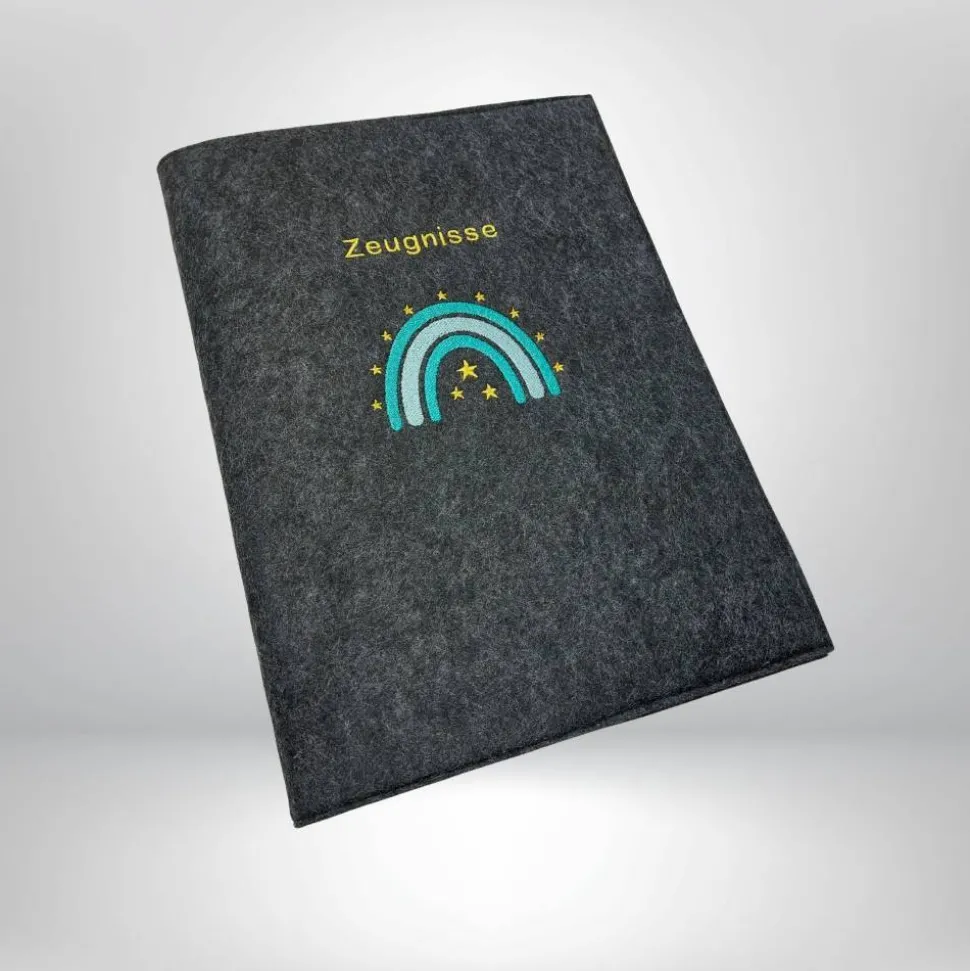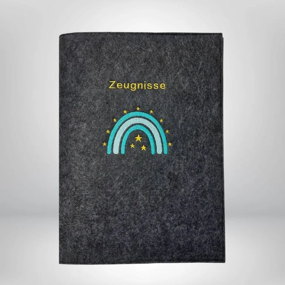Entdecke die einzigartige Zeugnismappe Regenbogen Sterne aus Filz – dein perfekter Begleiter zur Dokumentenaufbewahrung und ein besonderes Geschenk zur Einschulung oder für individuelle Anlässe. Die edle Regenbogen Boho Stickerei auf hochwertigem Designfilz macht diese Mappe zu einem echten Hingucker.