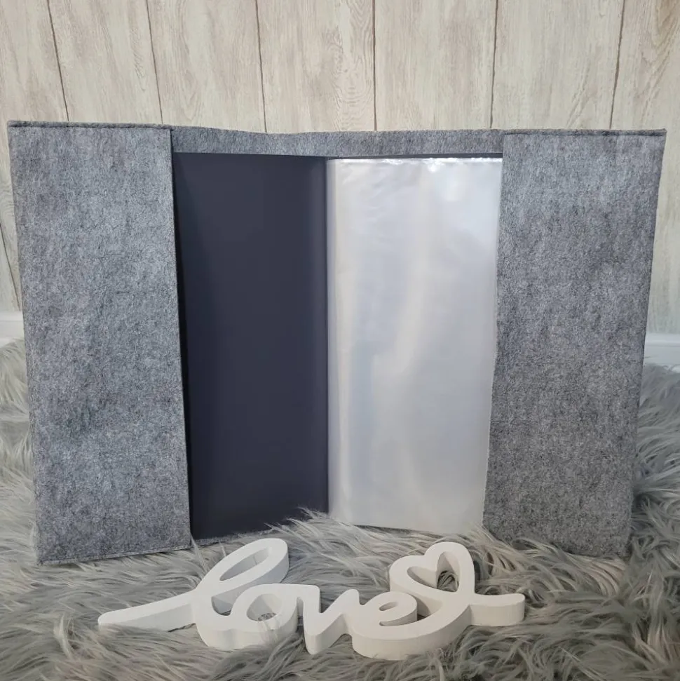Dies Hülle ist schon mit einem Sichtbuch bestückt, das mit 20 Klarsichthüllen versehen ist,