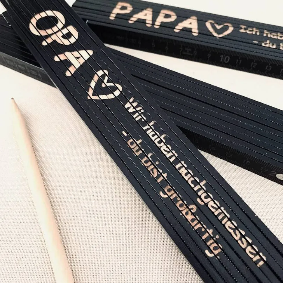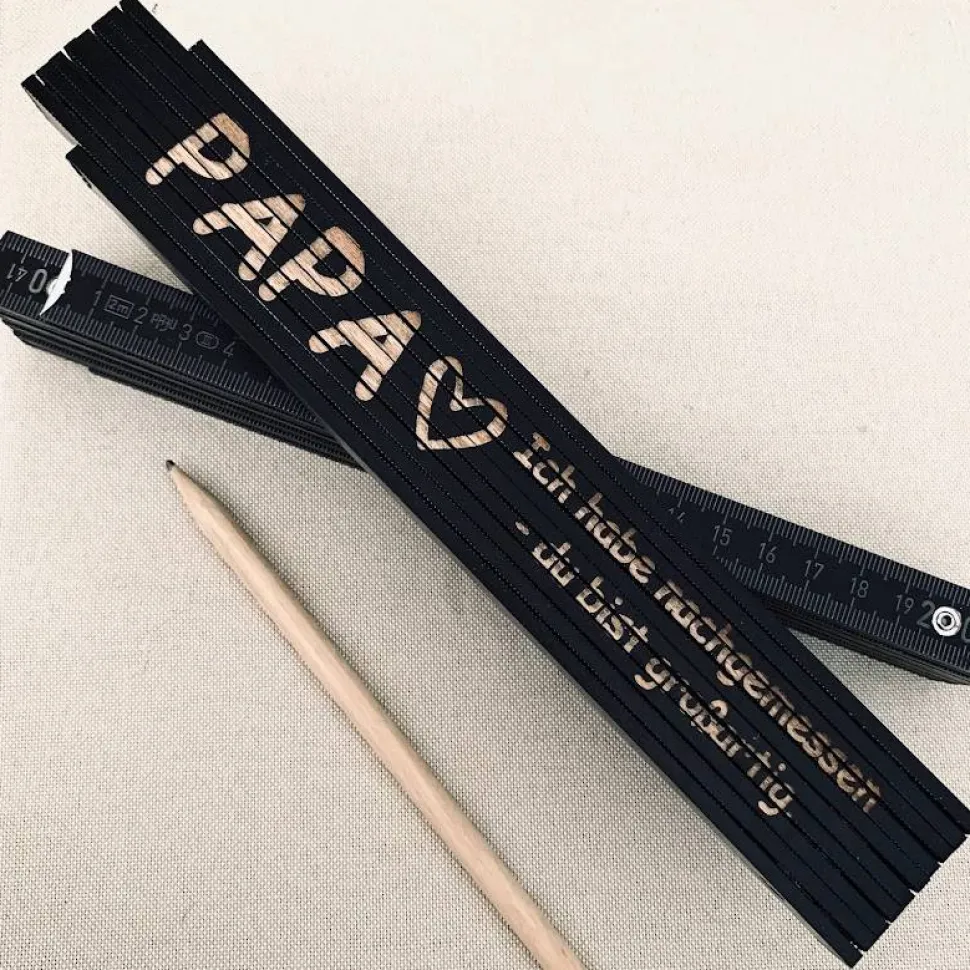 Unser personalisierter Zollstock ist das ideale Männergeschenk und eignet sich perfekt zum Vatertag, zu Geburtstagen oder aber auch zu Weihnachten. Jeder Zollstock wird mit viel Liebe zum Detail mit einer individuellen Gravur versehen.