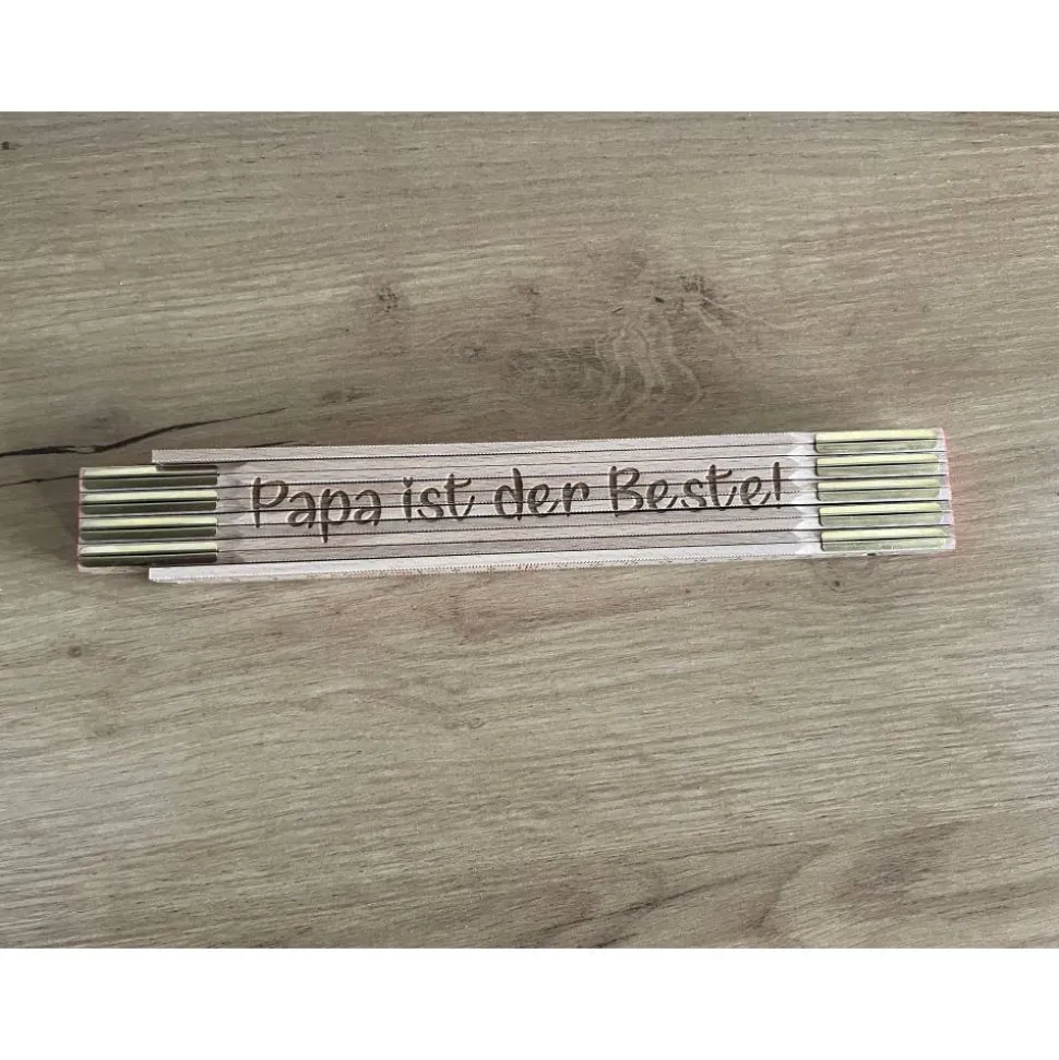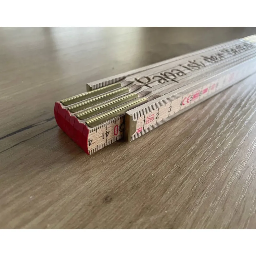 Unser personalisierter Zollstock mit Gravur ist das perfekte Geschenk für Handwerker und Heimwerker, aber natürlich auch echte Powerfrauen. Aus robustem Buchenholz gefertigt, ist er nicht nur ein praktisches Werkzeug, sondern auch ein edles Andenken. Die Gravur verleiht dem Zollstock eine persönliche Note und macht ihn zu einem echten Unikat. Als Geschenk zu Geburtstagen, Jubiläen, zum Vatertag oder als persönliches Dankeschön – mit unserem personalisierten Zollstock liegen Sie immer richtig! Optimiert für höchste Genauigkeit und mit leicht ablesbarer Skala ist er das perfekte Werkzeug für alle Messaufgaben. Der aus hochwertigem Buchenholz gefertigte Zollstock ist zudem äußerst langlebig und robust. Als Gravur kann ein Text, Logo oder andere Zeichen verwendet werden. Bei der Bestellung kann der individuelle Wunsch ganz einfach angegeben werden.