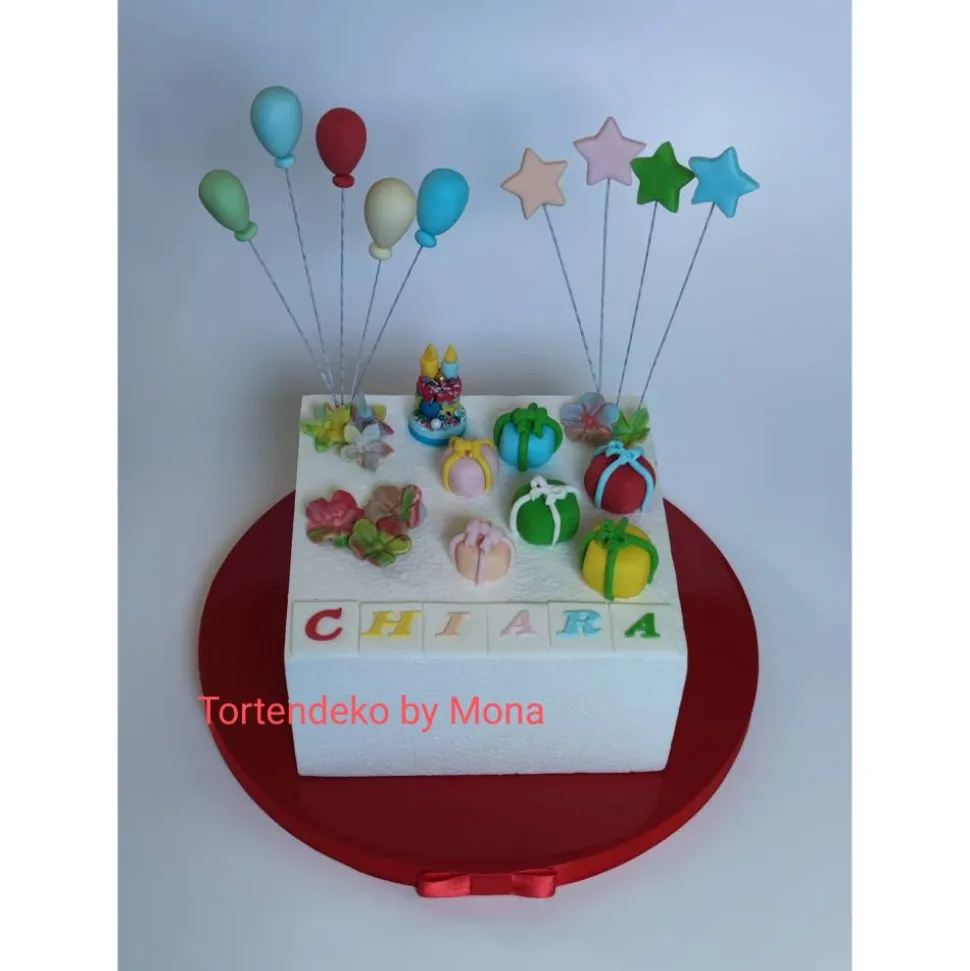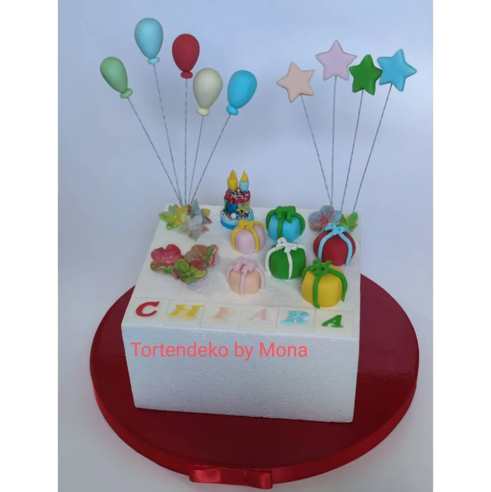 Die Figuren sind aus Fondant (Zuckermasse) mit Lebensmittelfarben hergestellt und sind durch Zugabe der Cellulose hart.
