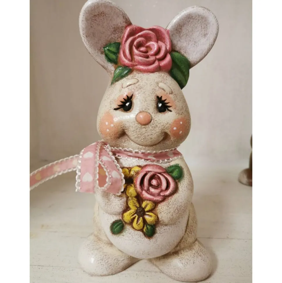 Der Hase ist aus Keramik, ca 21cm hoch. Handbemalt mit sehr viel Liebe zum Detail und mit einem Zuckersüsse Schleifchen dekoriert. Verwendet hab ich dafür Acrylfarben und abschließend zweimal wetterfest versiegelt. Das Häschen kann draussen stehen, sollte aber vor Frost geschützt werden.
