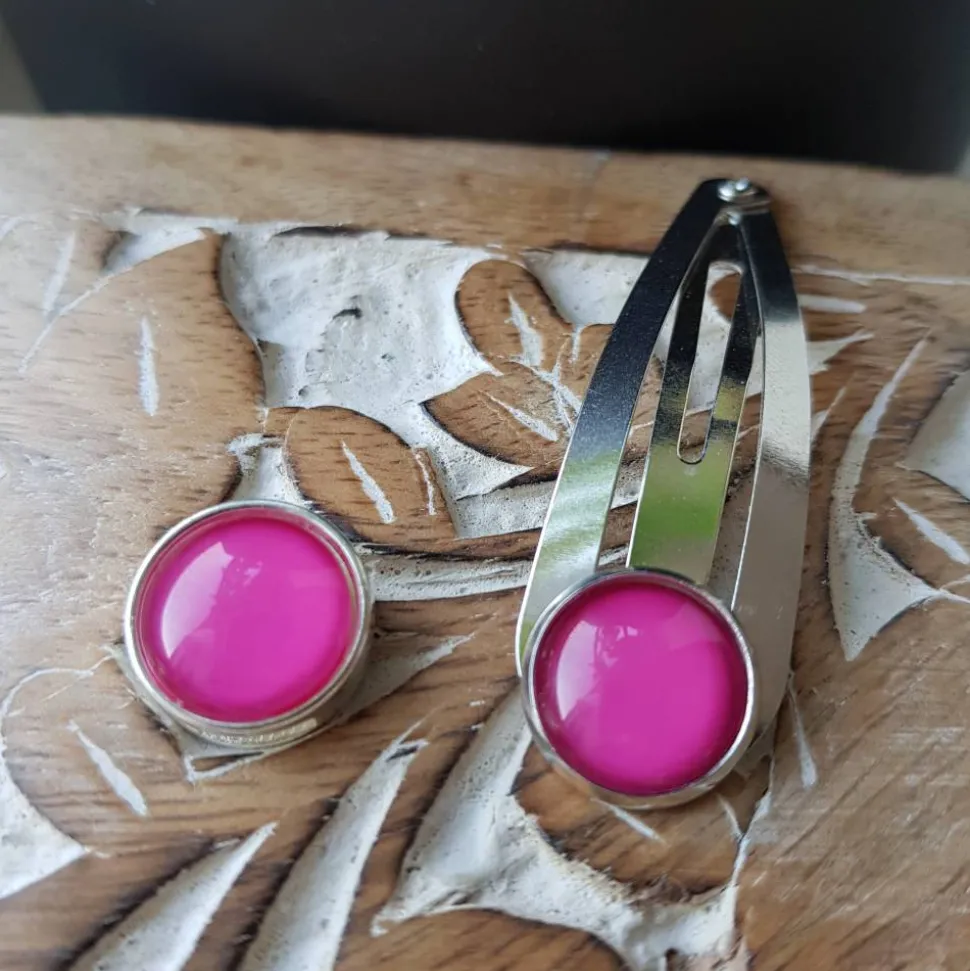 12mm großer Glasstein in silberfarbenen Haarspangen. Zwei an der Zahl.