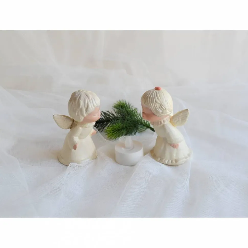 Zwei küssende Engel im cremefarbenem Kleid. Eine himmlische Weihnachtsdekoration für den Tisch, die Fensterbank oder fürs Regal. Wenn Sie ein Teelicht in die Mitte stellen, dann scheint es, als wollten die Engel die Kerze auspusten. Sie sind aus eigener Herstellung und liebevoll von Hand bemalt. Jede Figur ein Unikat. (Das Teelicht ist nicht im Lieferumfang enthalten.)